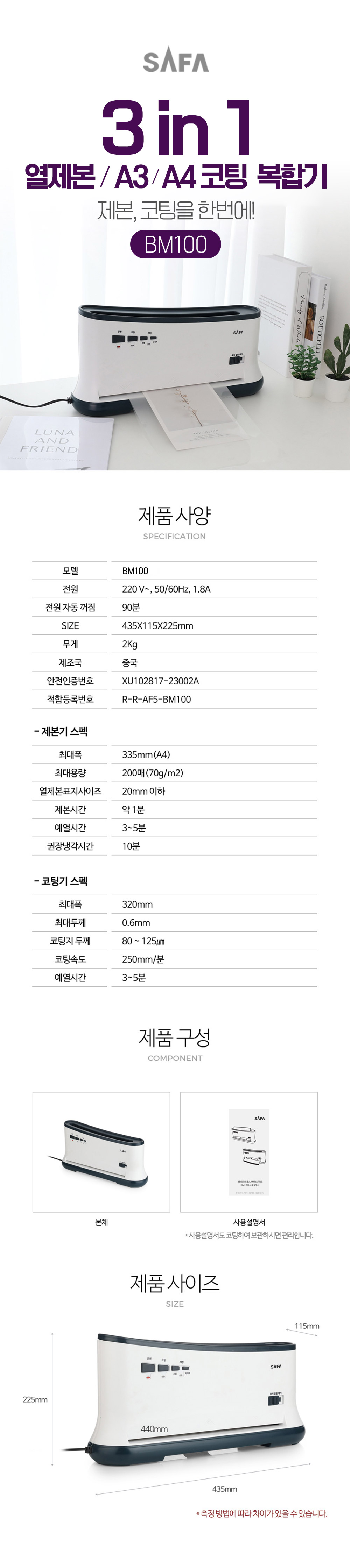 | Å©±â, ¹«°Ô | 435x115x225mm |